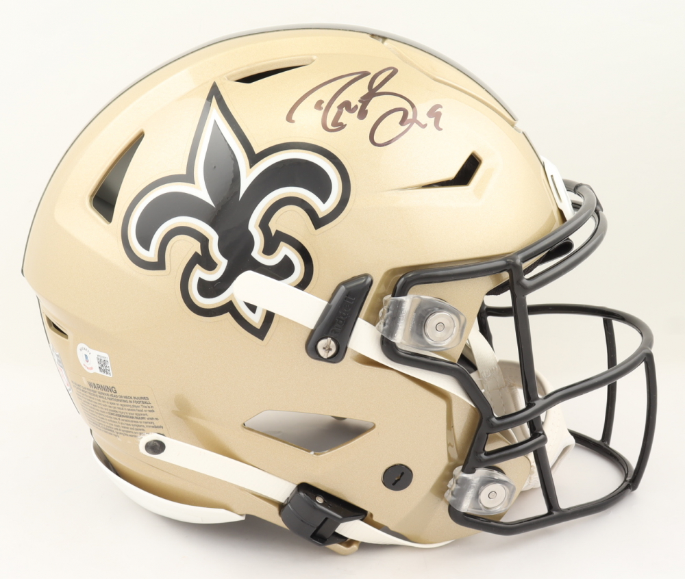 Drew Brees Signed Saints Full-Size Helmet (Beckett COA ... Riddell New Orleans Saints full-size replica helmet. Hand-signed by Drew Brees. The lot / autograph(s) includes an official Beckett Authentication Services serially-numbered hologram and matching COA as well as an official Drew Brees player hologram for authenticity purposes. The signing of this item was witnessed by Beckett.